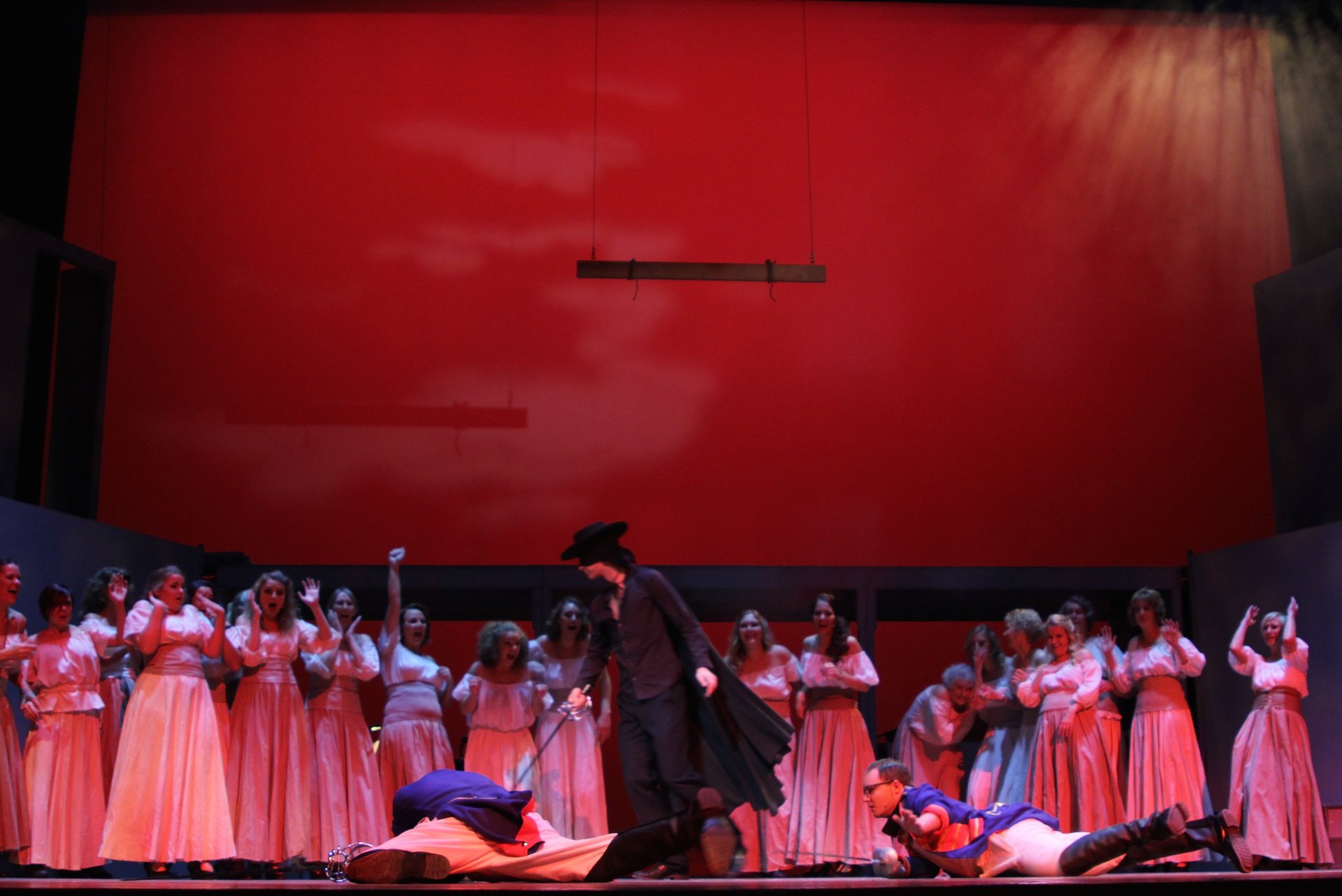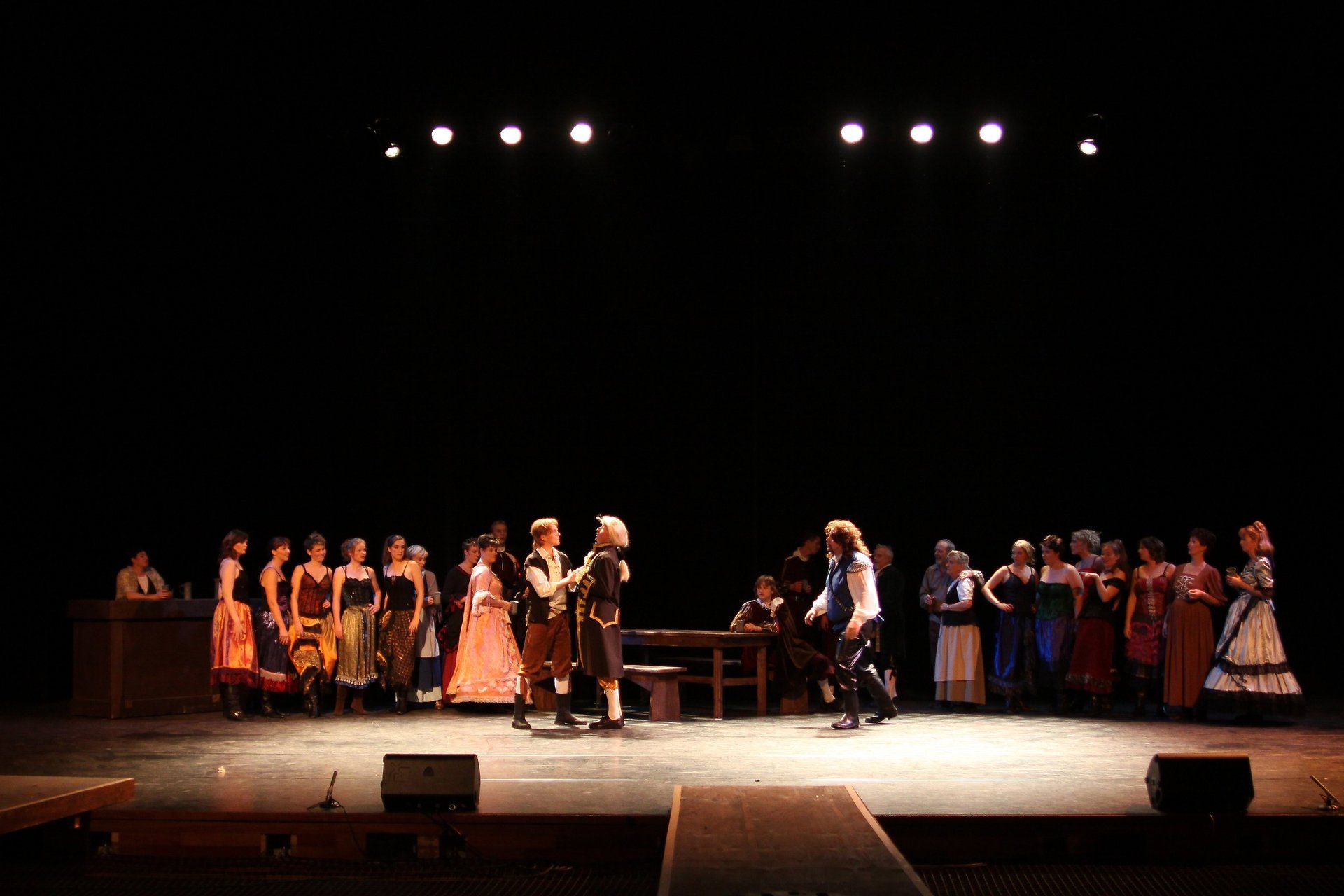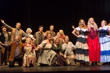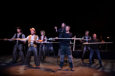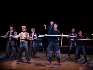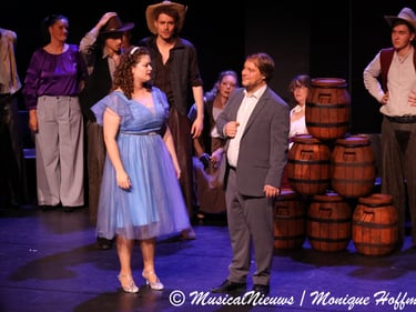 De spotlight aan, het doek gaat open. Maar het loopt niet helemaal volgens plan voor een theatergezelschap dat de laatste hand legt aan hun cowboy musical.