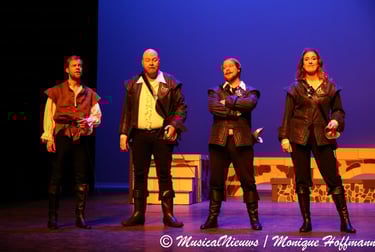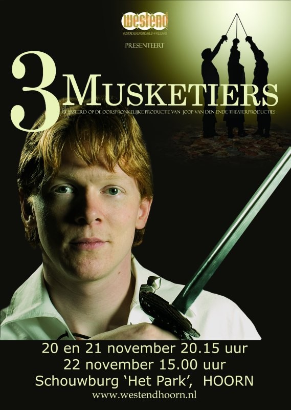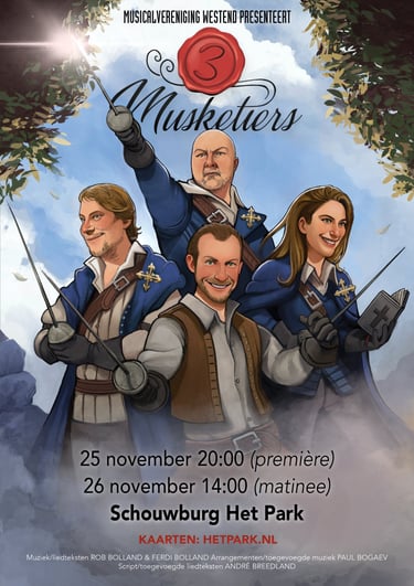 De musical ‘3 Musketiers’, naar het beroemde boek van Alexandre Dumas, gaat over de jonge edelman d’Artagnan die op weg gaat naar Parijs om daar musketier van de koning te worden. Onderweg ontmoet hij de drie musketiers Athos, Porthos en Aramis en sluit vriendschap. Gezamenlijk strijden zij tegen de corrupte kardinaal Richelieu en zijn handlangers Milady de Winter en Rochefort, die met een duivels plan koning Lodewijk XIII aan de kant proberen te schuiven. D’Artagnan gaat het avontuur aan en strijdt voor zijn idealen.