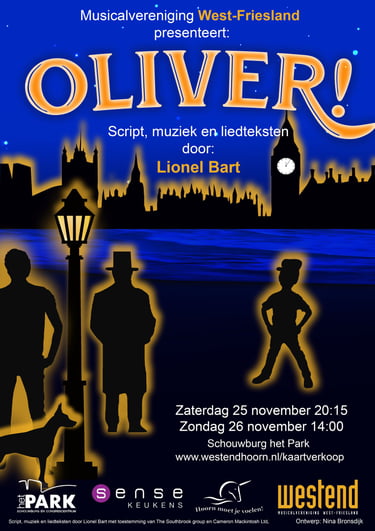 Oliver! vertelt het verhaal van Charles Dickens” Oliver Twist, het weesjongetje dat opgroeit in een oud, somber weeshuis in het 19e eeuwse Londen. Als de jongen terecht komt in een omgeving van grafzerken, rouwkransen, lijken en doodskisten, neemt hij al gauw de benen. Terwijl Oliver rondzwerft in de straten van Londen ontmoet hij een vrolijke bende gauwdieven o.l.v. de schurk Fagin. Oliver wordt ingewijd in de kunst van het stelen. Vanaf dat moment is Olivers leven permanent in gevaar...