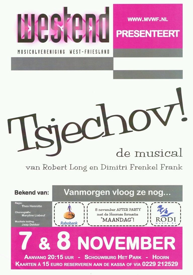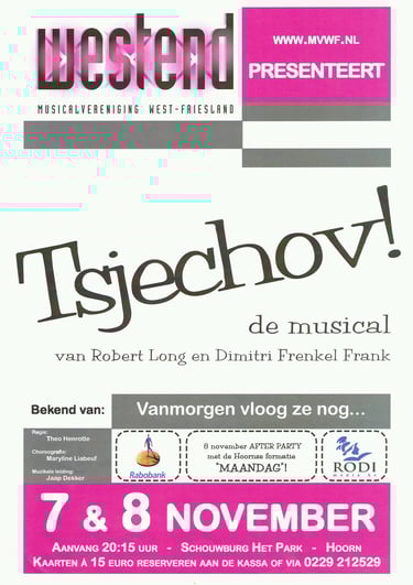 Musicalvereniging Westend brengt al ruim 40 jaar de mooiste musicals naar Hoorn. Bereid u voor op een heerlijke ‘whodunnit’ musical, vol humor en mysterie.