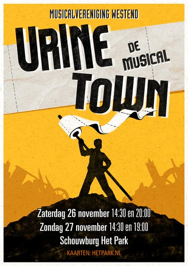 Urinetown neemt u mee in een verhaal over hebzucht, corruptie, liefde en revolutie. Een komische musical vol satirische humor over hedendaagse maatschappelijke zaken die ons allemaal raken.