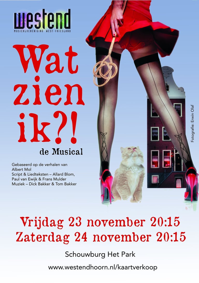 De oer-Hollandse musical Wat Zien Ik?! speelt zich af op de Wallen in het Amsterdam van de jaren zestig. Hier volgen we de perikelen van de prostituees (of nou ja, ‘sociaal werksters’, zoals ze zichzelf noemen) Greet en Nel, die de meest bijzondere klanten op bezoek krijgen. Met begeleiding van een live orkest, onvervalste Amsterdamse humor, schrijnende plotwendingen en zowel gevoelige als pikante momenten, is Wat Zien Ik?! een musical die je echt niet mag missen!